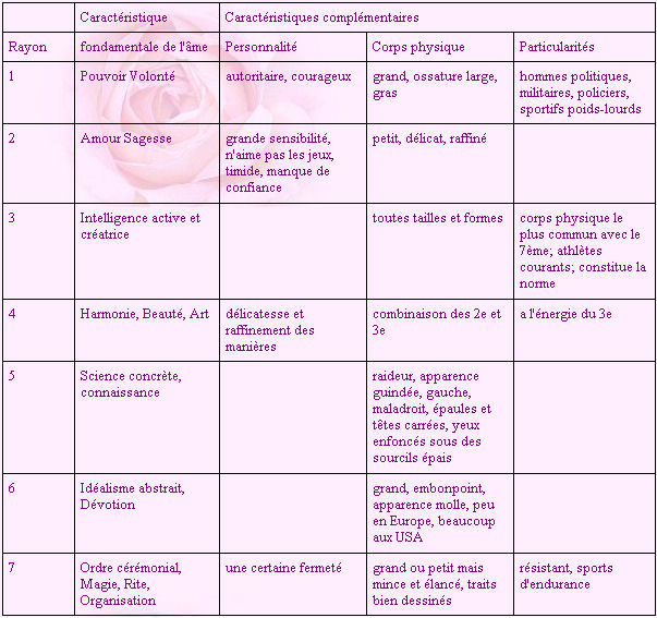 Caractéristiques principales des 7 rayons psychologiques