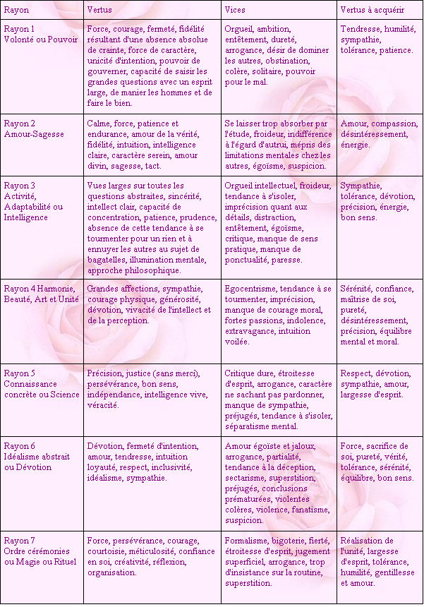 Qualités et défauts liés aux rayons d'âme